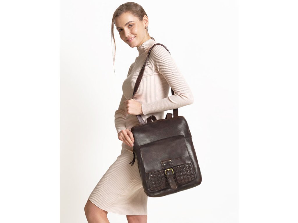 MARCO MAZZINI Tmavohnedý kožený batoh/kabelka 2v1