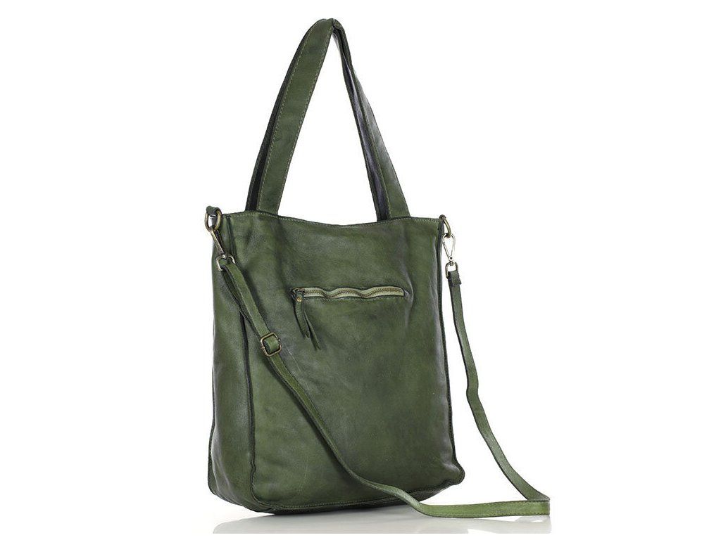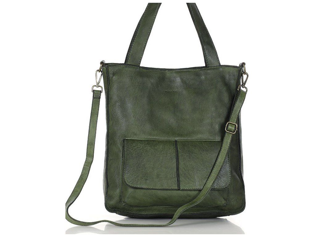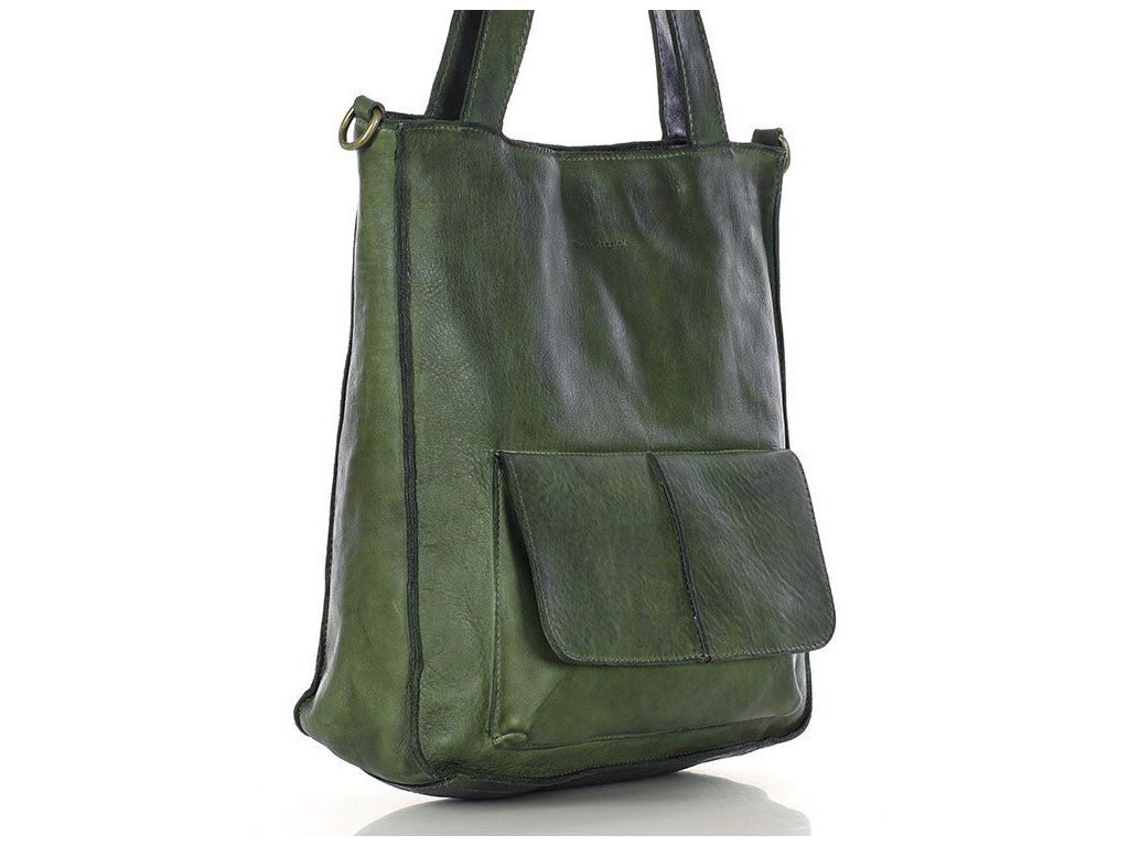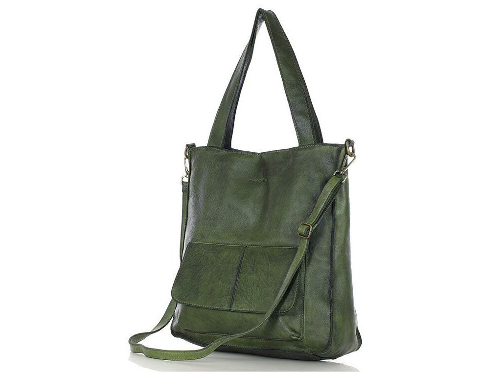 MARCO MAZZINI Zelená kožená shopper kabelka A4