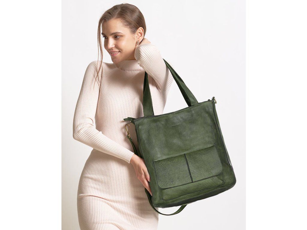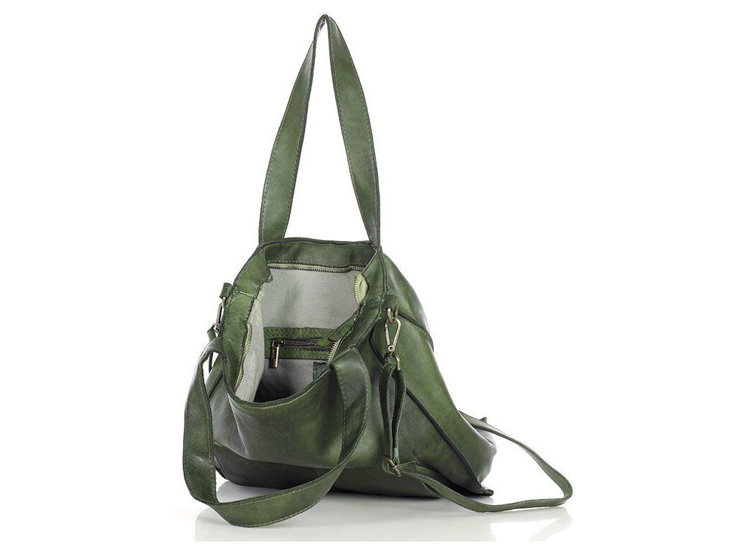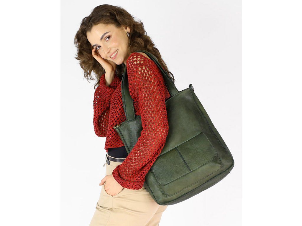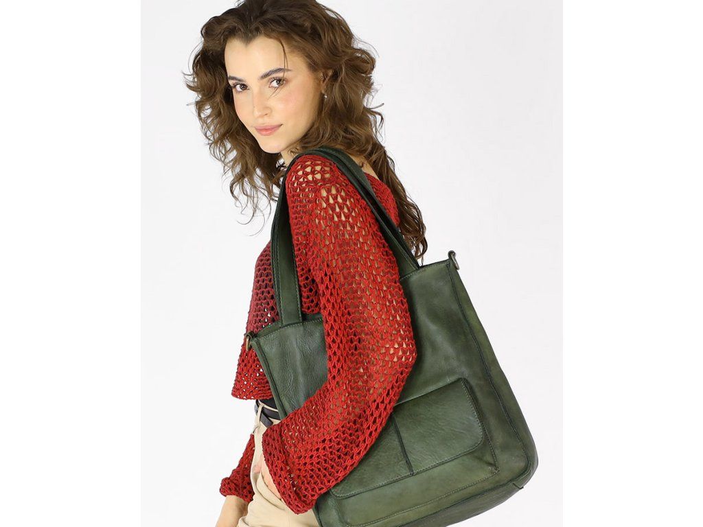 MARCO MAZZINI Zelená kožená shopper kabelka A4