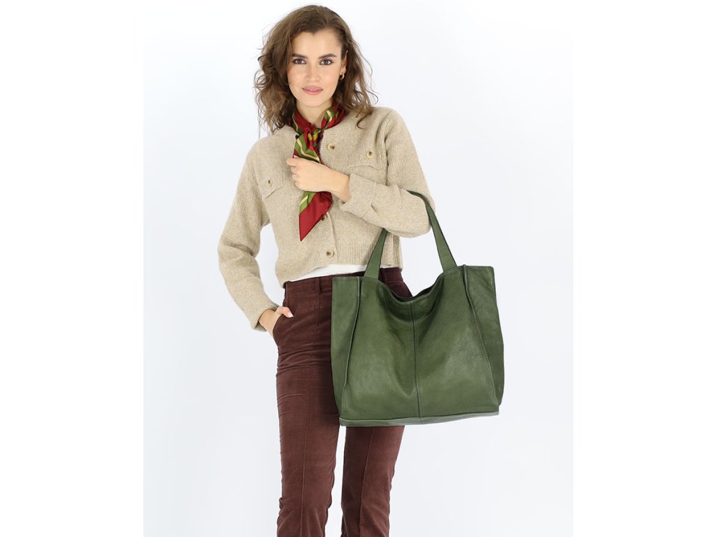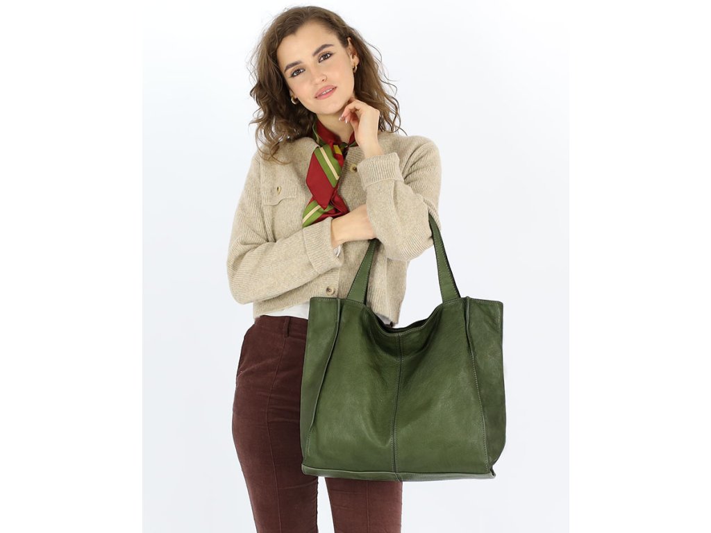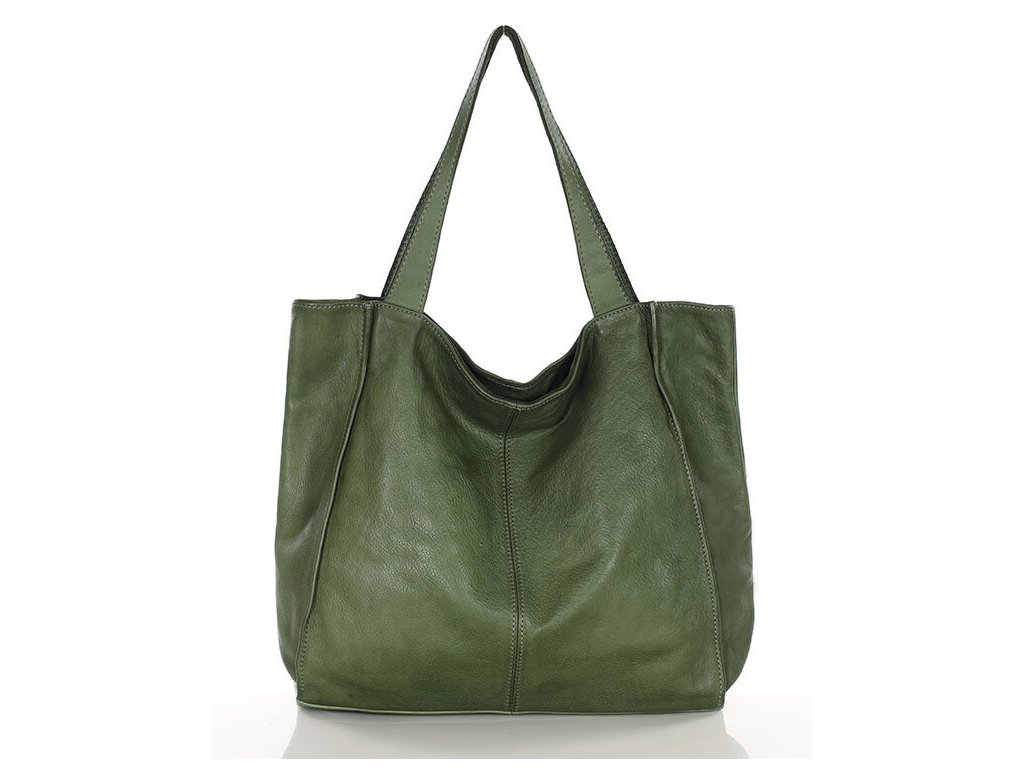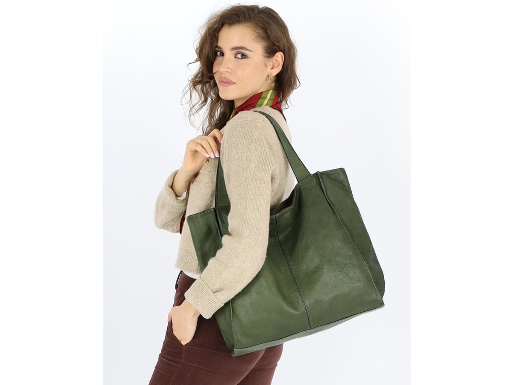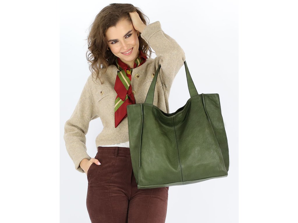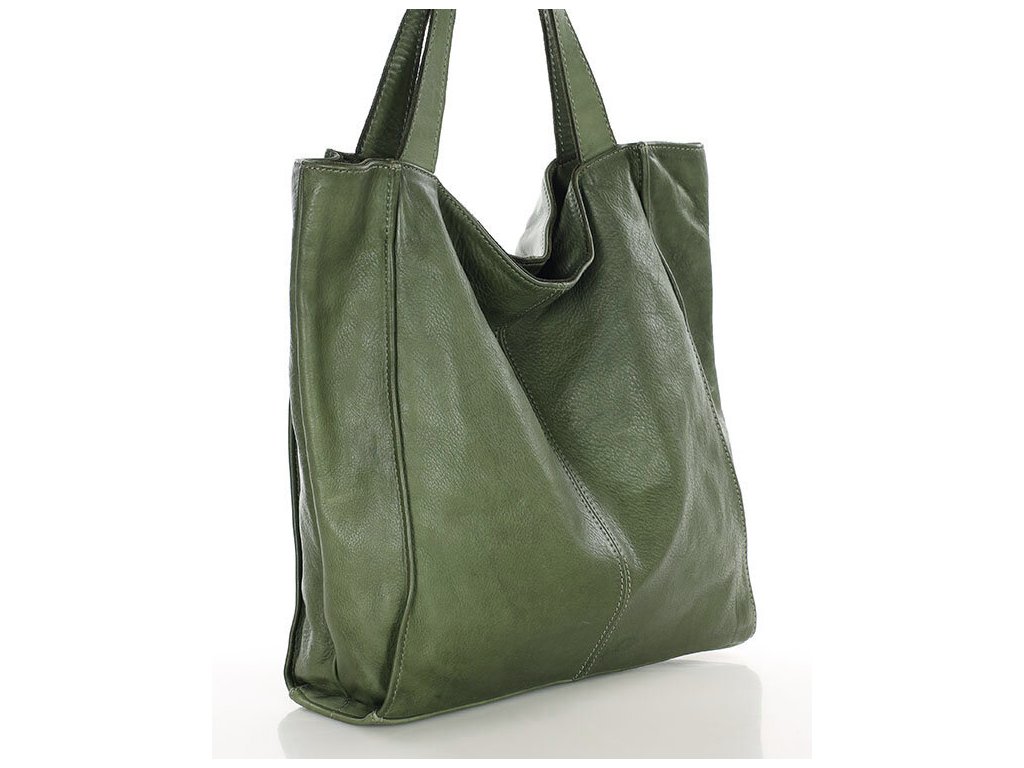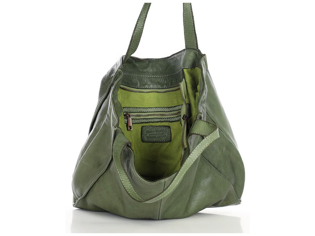 MARCO MAZZINI Zelená kožená shopper kabelka handmade