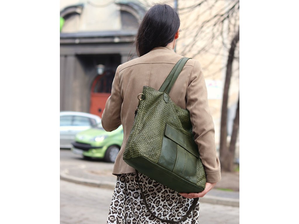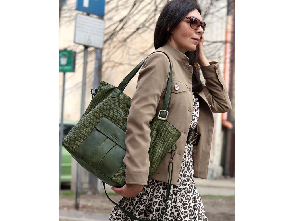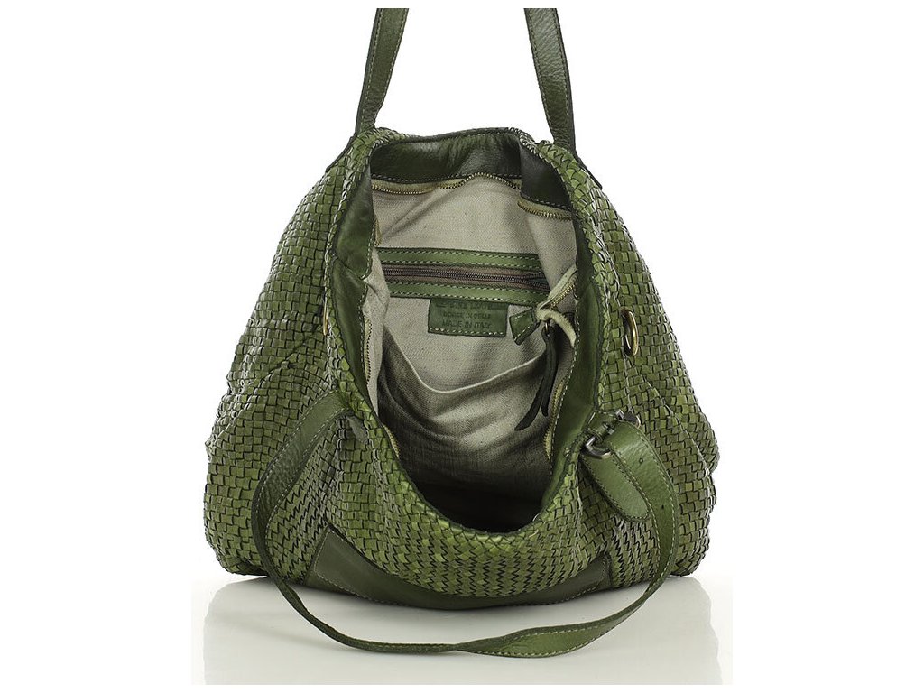 Hľadáte výnimočnú kabelku z pravej kože, ručne pletenú skúsenými remeselníkmi? Tento model shopper tašky je pre vás ako stvorený! Priestranný interiér so zapínaním na zips ukrýva praktické vnútorné vrecká a predné vrecko na magnet.
