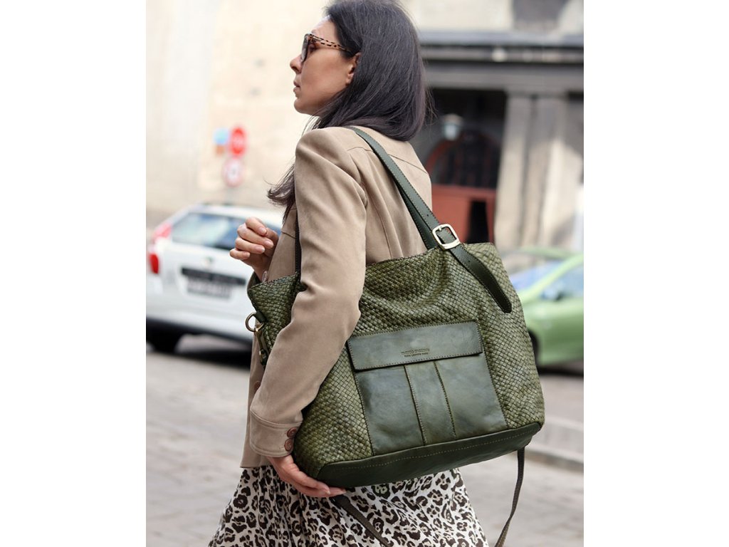 MARCO MAZZINI Zelená veľká pletená shopper kabelka