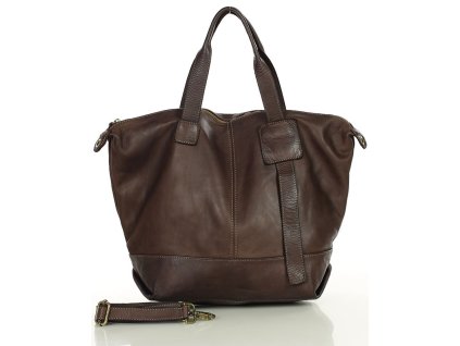 Marco Mazzini Tmavohnedá veľká kožená shopper kabelka A4